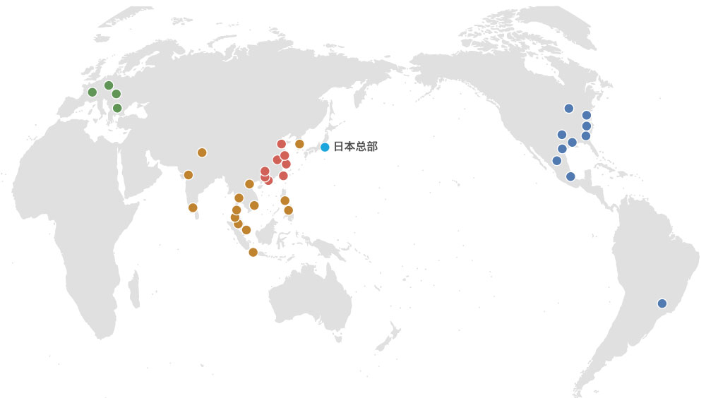 在中国,上海、广州、香港、台湾4个城市设立法人公司,3个城市设立分公司、1个城市设立事务所。